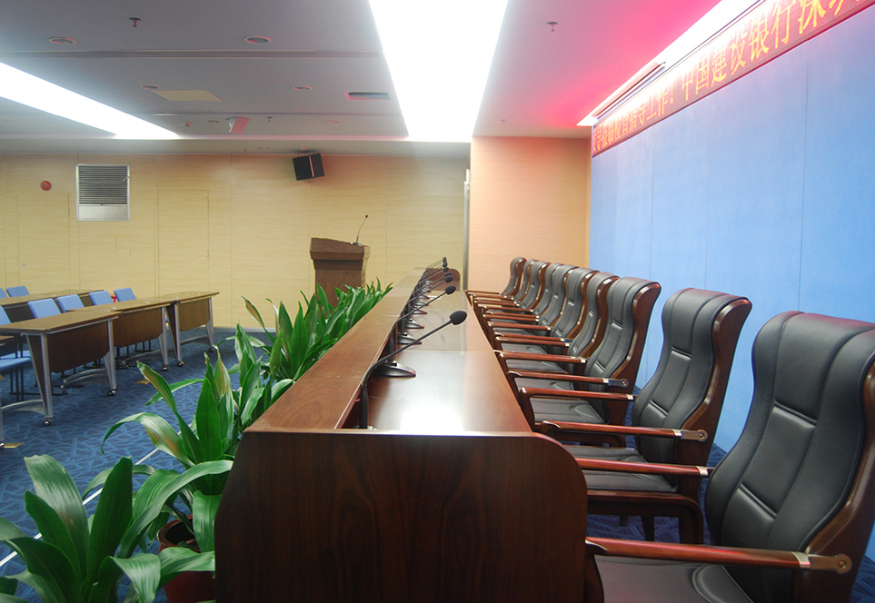建設銀行深圳分行座落于市中心榮超商務中心大廈,由A區、B區組成,此次建行深圳分行由六層會議中心和三十六樓行長層會議中心組成,其六樓會議層由遠程視頻會議室、3大會議室、電話會議室、多功能會議室共八間,系統使用了YAMAHA雅馬哈數字調音臺、Symetrix思美數字音頻媒體矩陣、遠程視頻會議終端、電話會議、錄音錄像設備、OHM音箱、PROBASSCO功放、大屏幕投影顯示設備,會議層八間會議室所有音視頻設備由總控機房集中控制,整套系統運行良好,穩定性高,操作簡單,受到了使用方的好評。