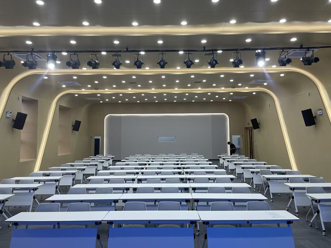 學校位于深圳市龍崗區中心城,占地面積555畝。學校師資力量雄厚,設備先進。以多媒體電教室為例,采用1個超大尺寸的高清LED顯示屏,搭配美國EAW專業音箱和英國PROBASSCO專業音響設備,以及MAKECHEE專業燈光設備,通過精準的聲場設計、燈光設計和布局,不僅提升了多媒體電教室的整體設計感和美觀度,還讓多媒體電教室的每個角落都有均勻的聲場覆蓋和清晰度,從而提高教學質量。