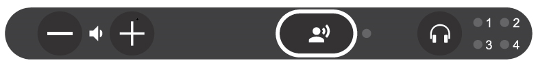 MXC605的口譯控制罩,帶有“SPEAK”(發(fā)言)和“FUNCTION”(功能)按鈕、音量控制和口譯通道選擇器。